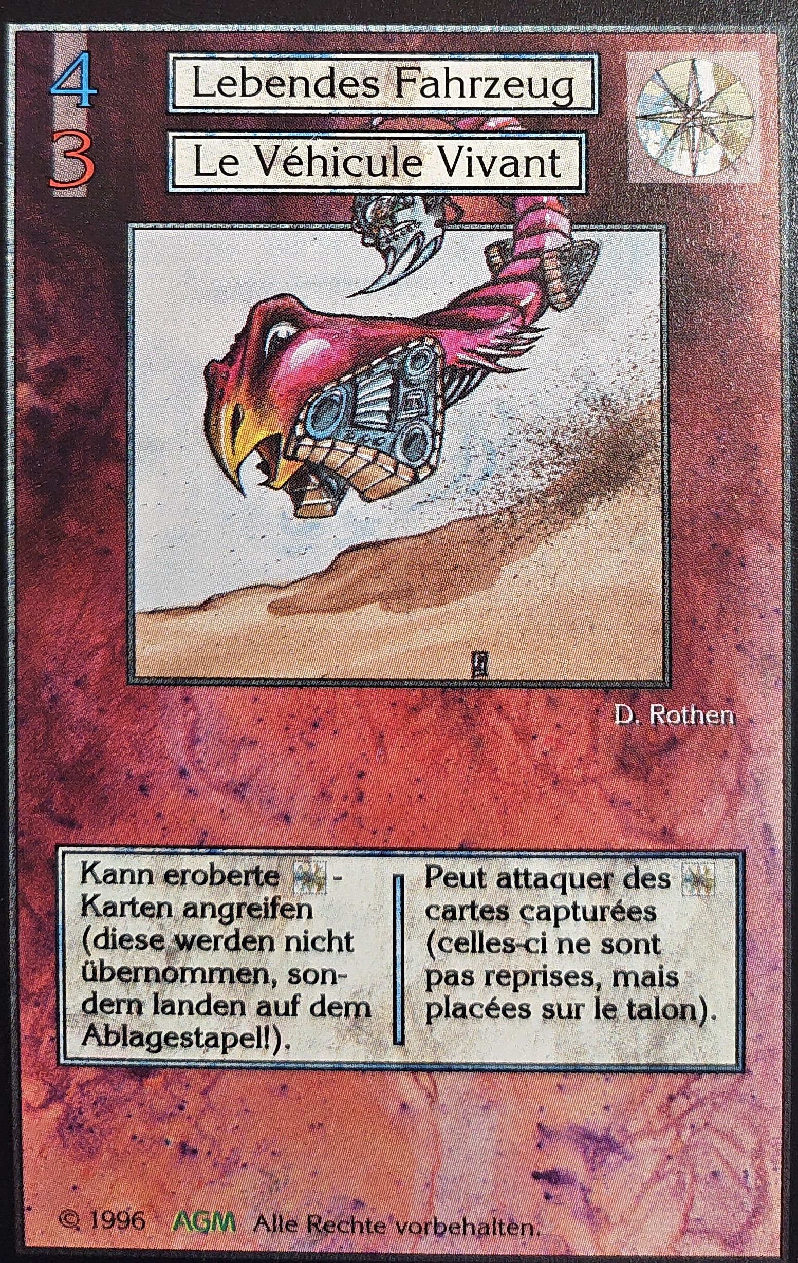 | Kann eroberte Karten angreifen (diese werden nicht übernommen, son- dern landen auf dem Ablagestapell) . | Peut attaquer des cartes capturées (celles-ci ne sont pas reprises; mais placées sur le talon) |