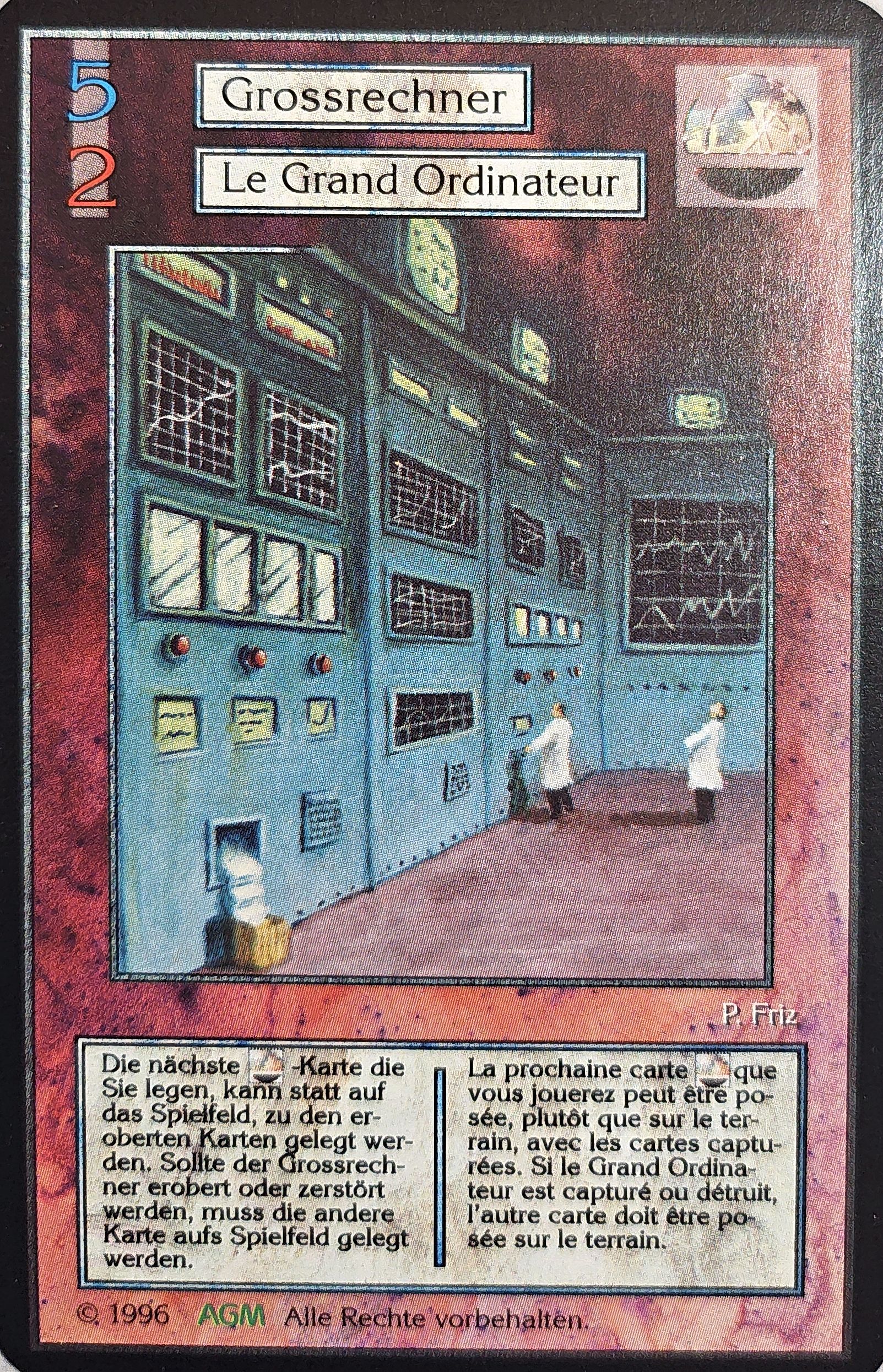 | Die nächste Karte die Sie legen; kann statt auf das Spieleld, zu den er- oberten Karten wer - den, Sollte der ‘&ddegtever ner erobert oder zerstört werden, muss die andere Karte aufs Spielfeld gelegt werdan | P Friz La prochaine carte vous jouerez peut êtrë po sée, plutôt que sur le ter- rain, avec les cartes captu rées. Si le Grand Ordina teur est capturé ou détruit, Tautre carte doit être po Bée sur le terrain |